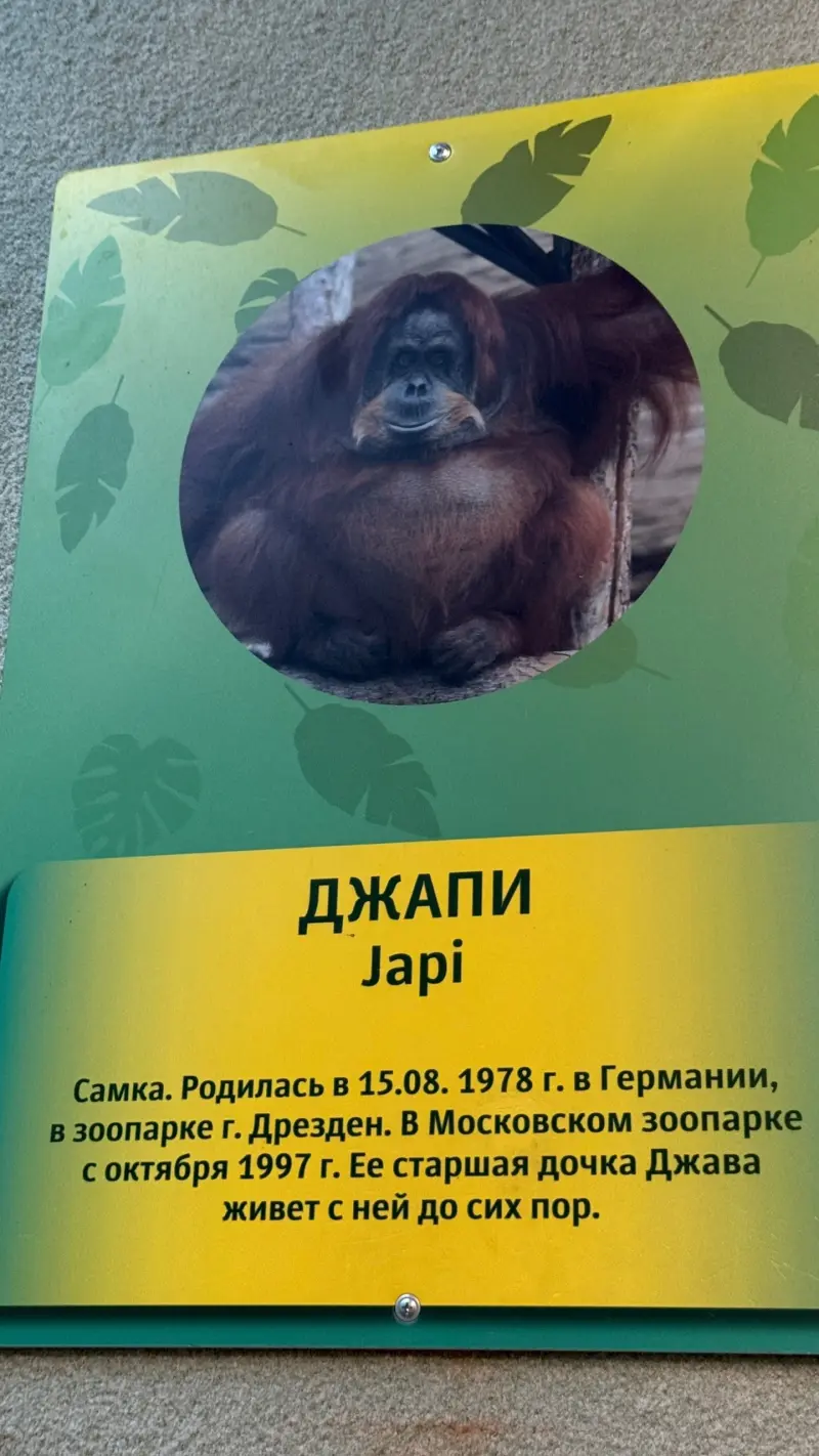 Орангутаны в неволе при надлежащем уходе живут значительно дольше, чем в дикой природе — в среднем около 50 лет. Суматранский орангутан Джапи из Московского зоопарка родилась в 1978 году и стала долгожительницей. Сейчас этот вид орангутанов находится под угрозой исчезновения.